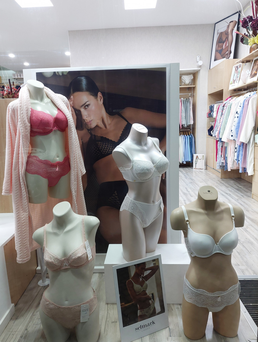 Na corseterie temos uma vasta oferta de copas, da copa B à copa H, e na lingerie temos tamanhos desde o S até ao 3XL para senhora.